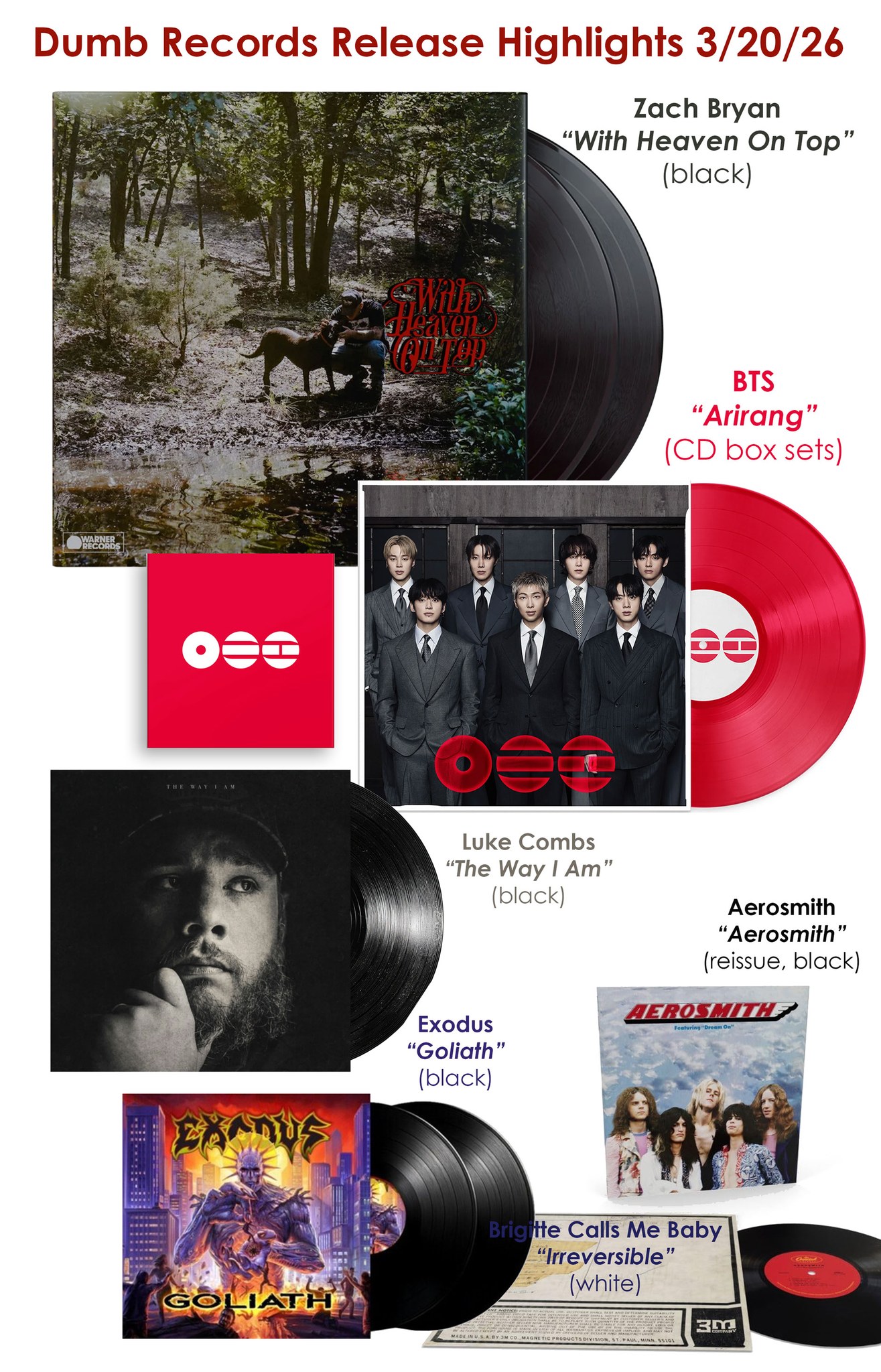 – American country artist ZACH BRYAN is out with yet another album, “With Heaven On Top” and we will have copies on black 140g vinyl.