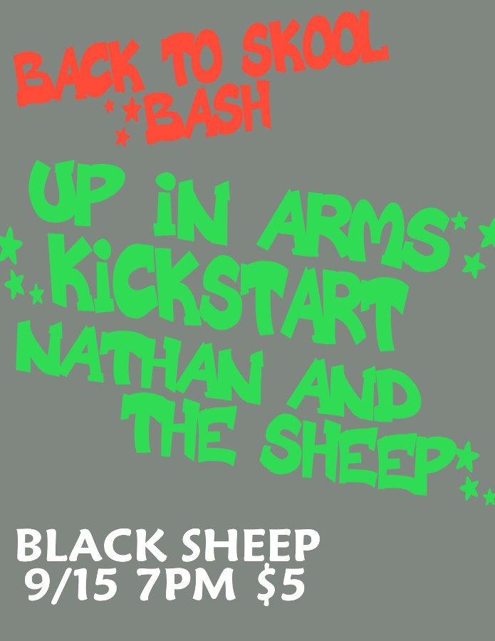 Happening the night before on September 15th we are having an all local back to school show! This show features pop-punkers Up In Arms and Kickstart, and also post-rock band Nathan & The Sheep. The show is at 7:00 pm and is five dollars. You can find a facebook event here. You can also check out more of our upcoming shows on our shows page.