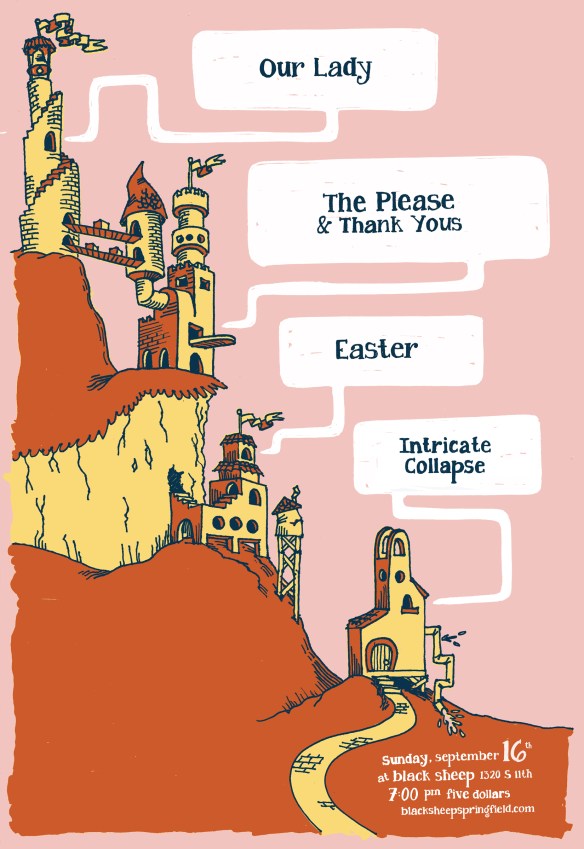Two new September shows have been added! The first is a show on Sunday, September 16th. This time Chicago punks The Please & Thank Yous are teaming up with Illinois indie pop band Easter and coming to Black Sheep the day after they play Never Forgot Fest in Bloomington. Locals Our Lady and Intricate Collapse are joining them for an all around fun time. The show is at 7:00 pm and is five dollars.