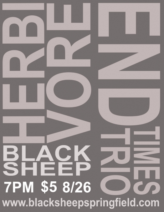 Tonight we are hosting our first jazz show at Black Sheep! End Times Trio will be playing featuring the jazz master Frank Trompeter and also Ben Jacob on violin. Then we have Herbivore from Chicago, which features Max Beckman originally from Springfield. It is sure to be a fun night. The show starts at 7:00 pm and is $5. You can find a facebook event here, and also be sure to check out our other upcoming shows on our shows page.