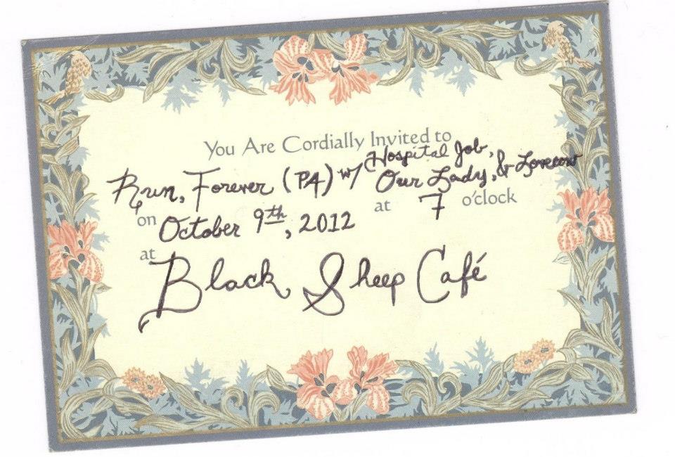 We are very excited to announce a real great show in October. It features the Pennsylvanian heart felt punk rockers Run, Forever. The show also features three equally heart felt bands: Hospital Job, Our Lady, Lovecow. This will be the perfect start to an awesome month.