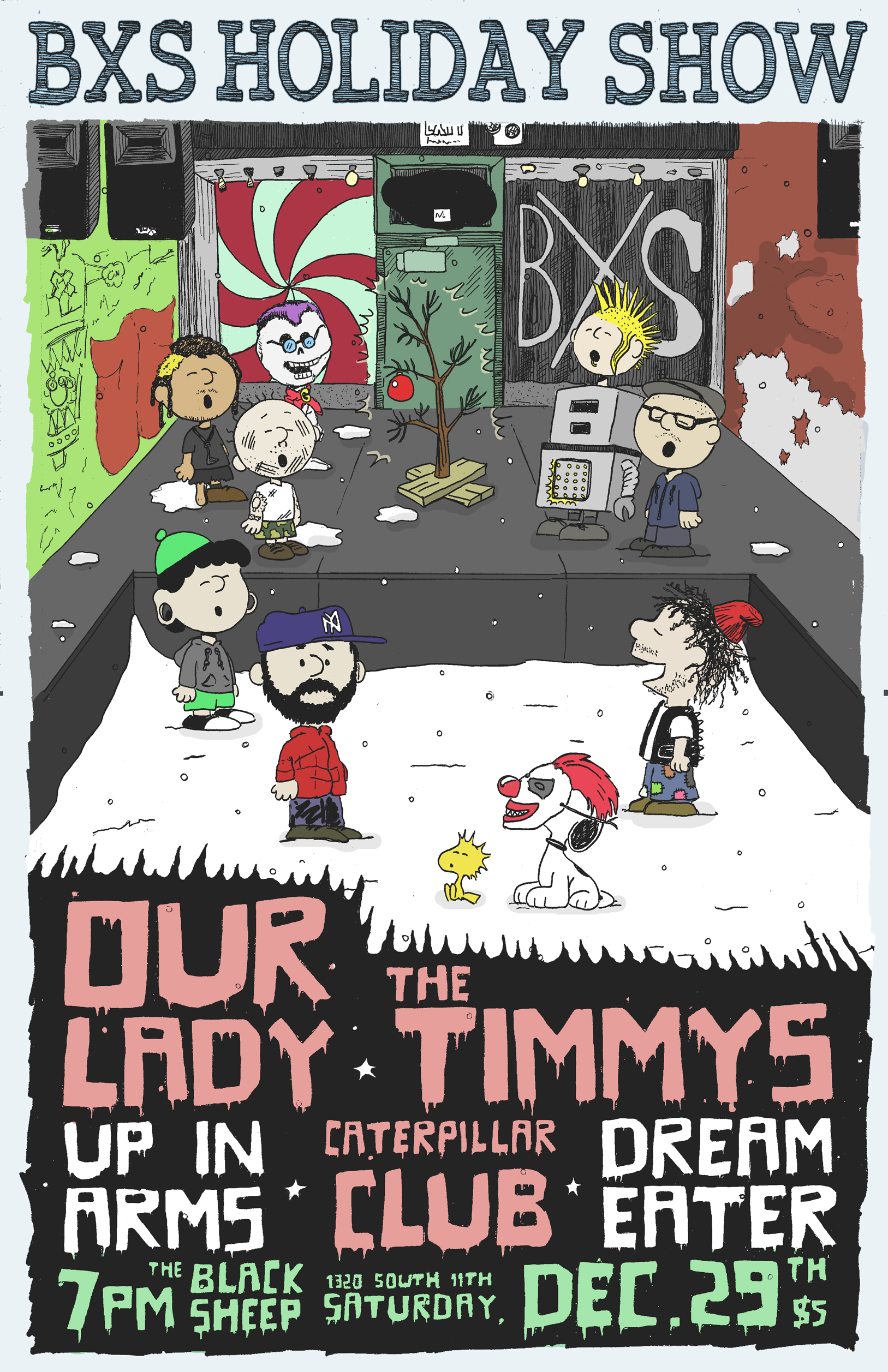 Winter is approaching fast and so are the holidays! That means it is time for a Black Sheep Holiday show with some great local bands! On Saturday, December 29th we are having a New Years Eve/Christmas celebration all in one. And now for the bands playing! First we have the all-new Dream Eater featuring members of Nathan & The Sheep and Mildred. Next we have the very heavy shoegaze project Caterpillar Club. Then we have pop-punk all stars Up In Arms bringing the fun. The Timmys will be there playing some songs off of their brand new full length album. And last we have Our Lady, wish them luck before they go on tour in January!