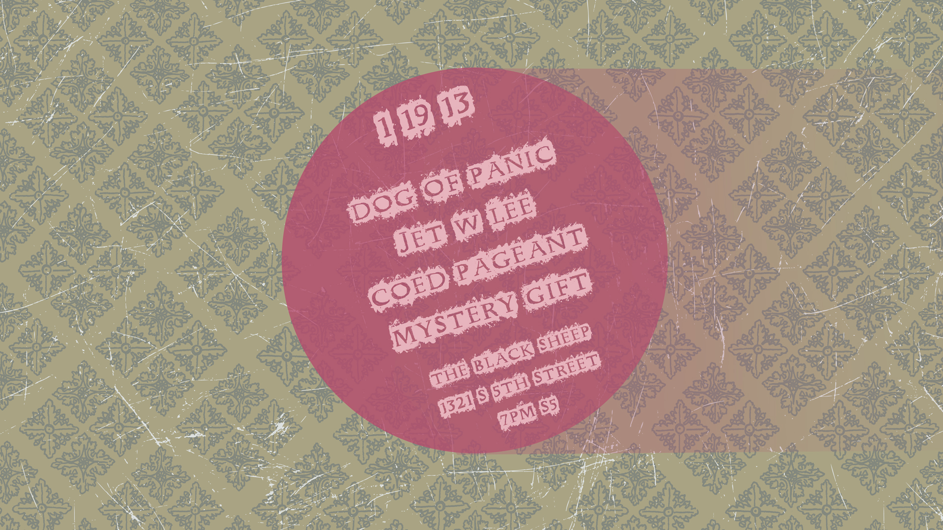 If you come out to Black Sheep tonight, you are surely in for a treat. Tonight on January 19th we have a real rockin’ show going on and it all starts at 7:00 pm. Tonight we have Dog of Panic, who will possibly be playing some songs off of their upcoming album. Then we have the rock band from Chicago Jet W Lee. And starting things off we have the softer duo Coed Pageant.