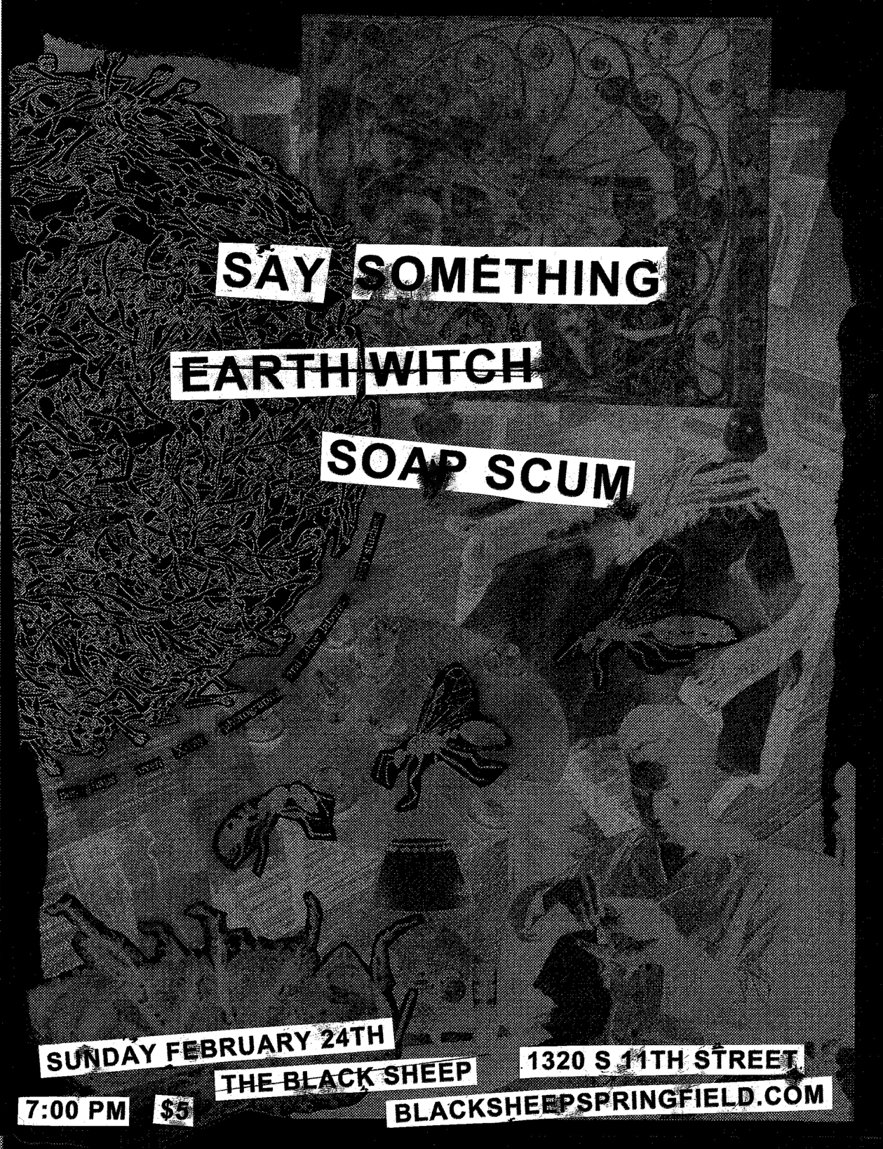 Blah. On Sunday, February 24th we have this pretty scummy and grim looking show for you all. Things are sure to get loud, fast, and heavy. First up we have Soap Scum which we have been told is a new punk band in town featuring ex members of Kick To Tha Head, Intricate Collapse, and Bastognes Best. Then we have Earth Witch from Champaign featuring members of Rvins and Dino Bravo. And finally we have Say Something, the new punk band of ex members of the legendary Springfield ska band Don’t Mess With Winkie. Also be on the lookout for some bands to be added to this show later!