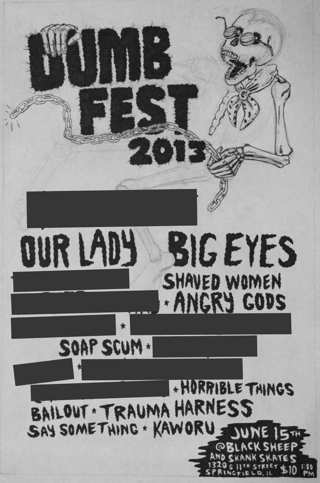 Ten more bands are yet-to-be announced between now and the end of the month, so stay tuned! Once again, Dumb Fest is one of two summer festivals we will be putting on the summer of 2013. It will be taking place at Black Sheep and Skank Skates.