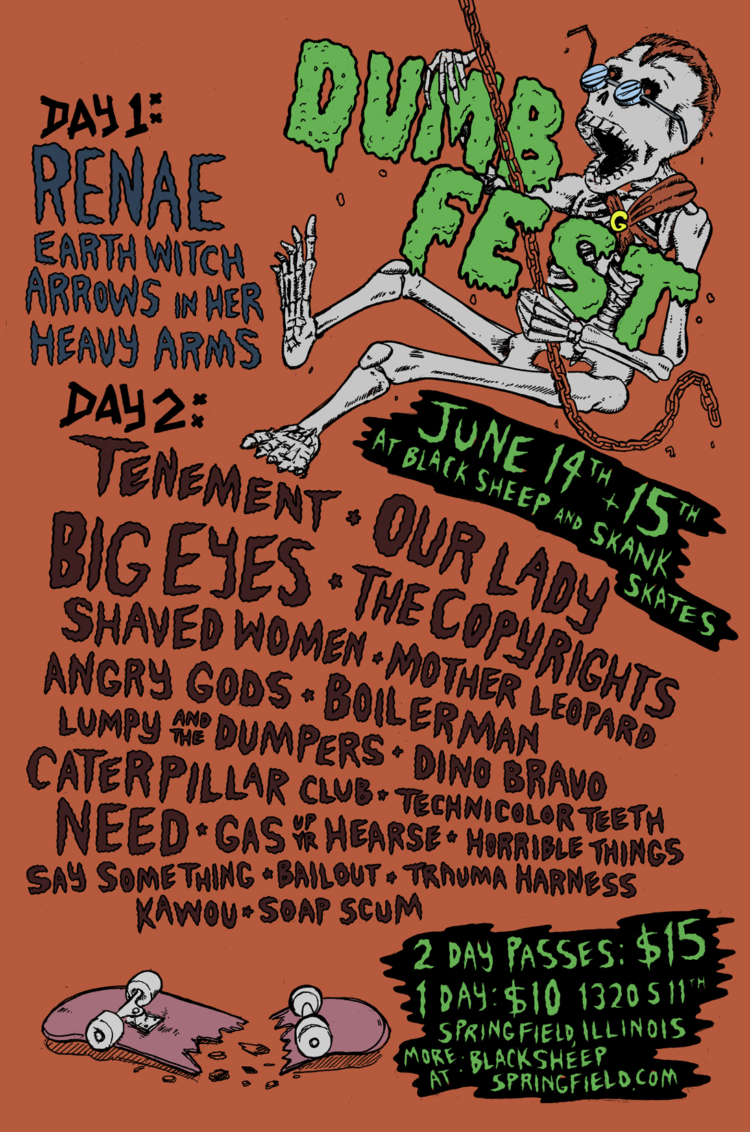 Tickets are up for pre-order for the festival right now at http://blacksheepspringfield.bigcartel.com/product/dumb-fest-2-day-pass