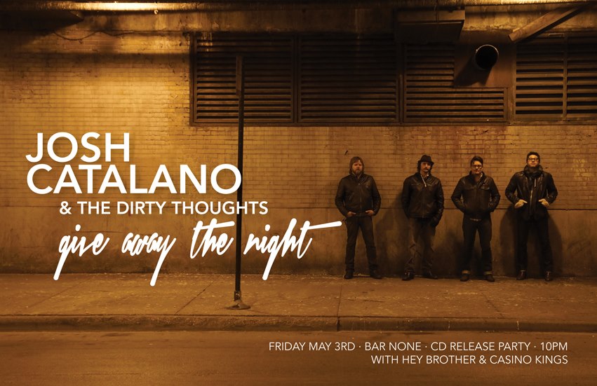 It looks like Josh Catalano & The Dirty Thoughts have been working on their upcoming full length Give Away The Night for a while now and they are finally ready to release it to the world! The CD release show for the new album has been announced for May 3rd at Bar None! While the physical release of the album will be May 3rd, the national release of the album will be May 7th. You can’t listen to any of the new album yet (although you might have heard a song or two on Black Sheep Radio), but for some older Josh Catalano tunes you can head over to JC & The DT website right here.