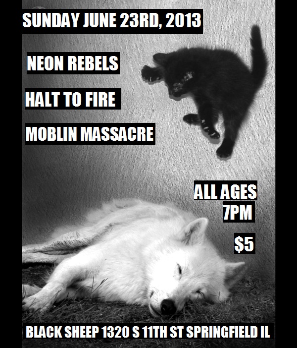 It’s another show announcement for June! This show is happening on Sunday, June 23rd. It’s a good old-fashioned three band punk rock show. This show features Neon Rebels who are a punk/hardcore band local to Springfield. Then we have Halt To Fire who are a brand new metalcore band from Ashland, Illinois. They will be playing their first show ever so let’s come out and show our support! The third band that will be opening things up for us is Moblin Massacre.