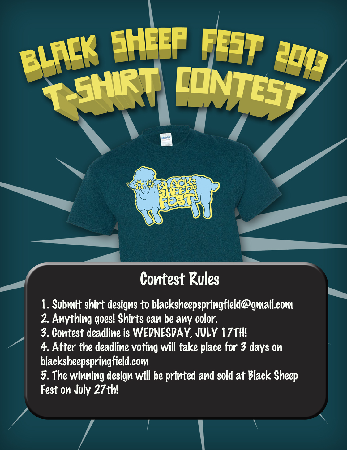 Here at blacksheepspringfield.com we are always trying new things. This week we are trying something new and that is a t-shirt designing contest! That’s right! YOU can design the next Black Sheep Fest shirt! Here are the contest rules: