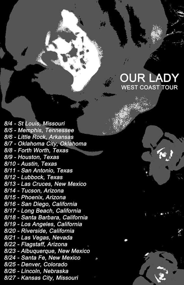 Our Lady has also started posting dates for their upcoming August West Coast tour! They will be heading out from August 4th through the 27th and plan to make it out to Texas, California, and back. You can check out those dates below. Our Lady will be playing in Springfield next at this year’s Black Sheep Fest happening on Saturday, July 27th.