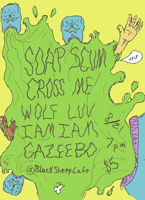 Soap Scum is a local group of street rats straight from the sewers, as well as your worst cleaning nightmare! They have many dirty hard-punk tunes to offer, so get ready to get grimy! Next on the list is Cross Me, coming from Milwaukee. This hardcore band has some thrashy jams with a good beat so look forward to hearing those folks! Following them is Champaign based punk band Wolf Luv, which is where that live wolf comes in that I mentioned earlier.