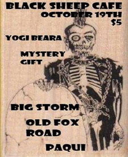 We got a rockin’ show for you tonight, folks! Opening things up here we got Mystery Gift, a local group with members of Mildred and Meredosia. What IS the mysterious gift? That’s the age-old question. Following Mystery Gift, we have have the two-piece garage rock group Yogi Beara. Following them, we have the lovely Paqui who will grace us with some wonderful tunes. After Paqui, we have a folk punk group from Arthur, IL called Old Fox Road. You can check out their stuff down below. Finally, closing off the night, we have the beloved rockin’ and rollin’ Big Storm.