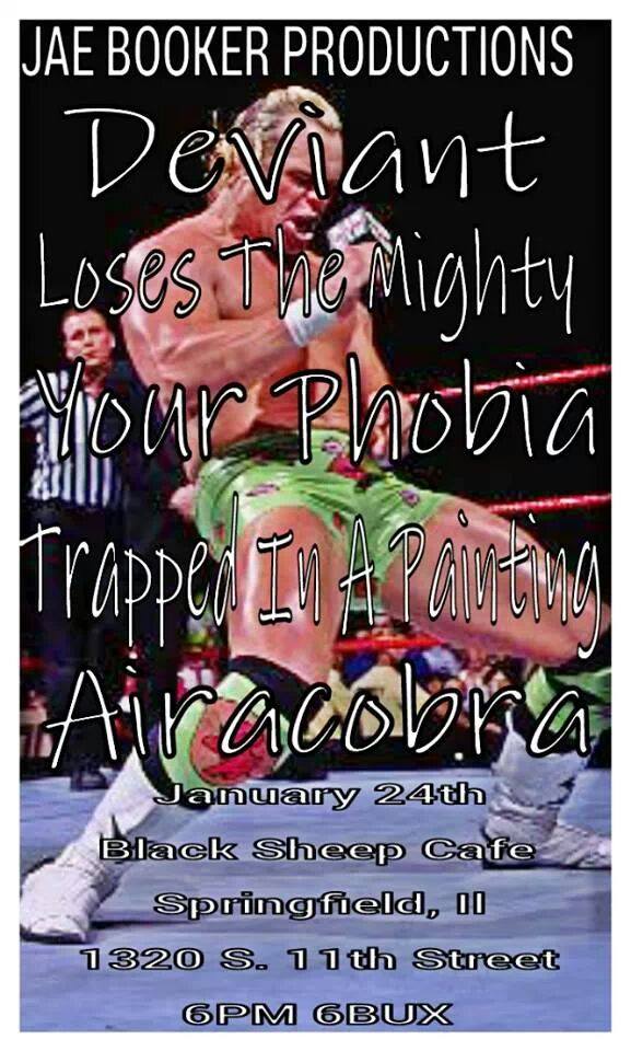 Are you all ready to dive into the new year? We already have a large amount of shows lined up at Black Sheep for 2014 and today we are telling you about this one happening on Friday, January 24th. This show will feature Deviant from all over Central Illinois. They play a melodic type of hardcore. We also have newer band Loses The Mighty also from various parts of Central Illinois. You can check out their demo streaming on the player embedded below. Then we have a scary rock n’ roll band called Airacobra from parts unknown. Try not to get bit by the Airacobra! There is another band playing called Your Phobia. Very spooky! Last but not least the band Trapped In A Painting will be playing this show. They are from Decatur.
