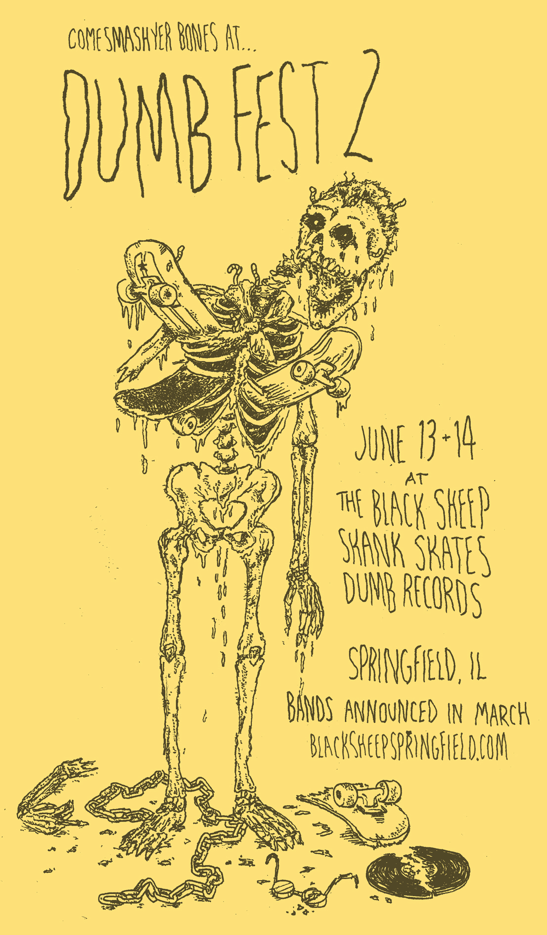 Last year in June we hosted the first ever DUMB FEST at Black Sheep and Skank Skates and it was a smashing success. The idea behind the festival was to put together something that focused on current punk and hardcore DIY music happening in Central Illinois and the surrounding areas. Today we are announcing that DUMB FEST 2 will be happening on Friday and Saturday June 13th and 14th, 2014. No bands are being announced just yet, but now you have dates to start asking off work and planning around this big weekend!