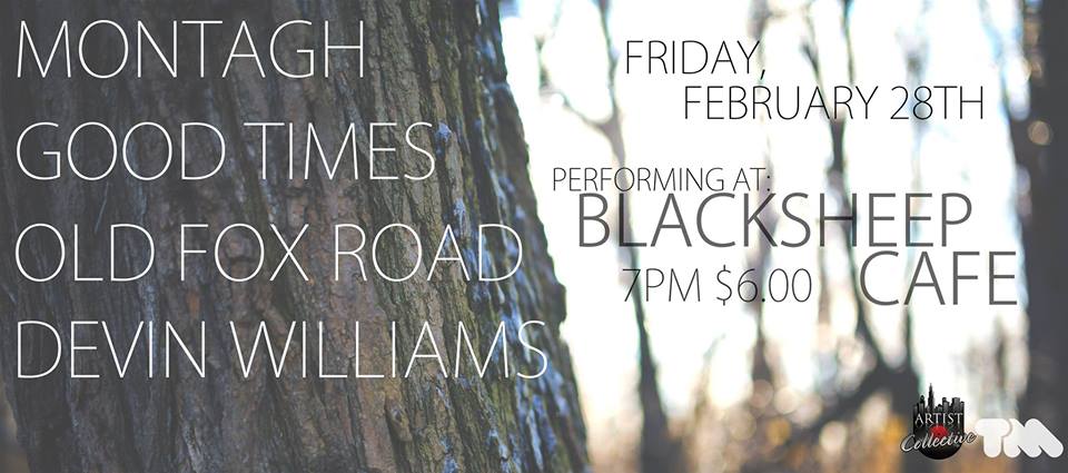 Welcome to Friday, we’ve got a show at Black Sheep tonight! Montagh will be playing, which is some fresh wheat midwest folk coming straight from the streets of Springfield. To continue the night we’ll have Good Times coming around again! The last time he played for us was way back in October so now is your chance to come hear these acoustic indie-movie lounge tunes. Also playing tonight will be our Santa loving friends in Old Fox Road. These fellas will definitely give us some down-home, feel-good, pop-folk songs to enjoy with some charismatic vocals to tie their whole set up, so come check them out if you didn’t get to catch them at the Radon Lounge a few months ago. To round off the evening will be Devin Williams! He’s from Florida and will have some cool reggae bluesy jams to give to us, so definitely check that out as well, holmes.
