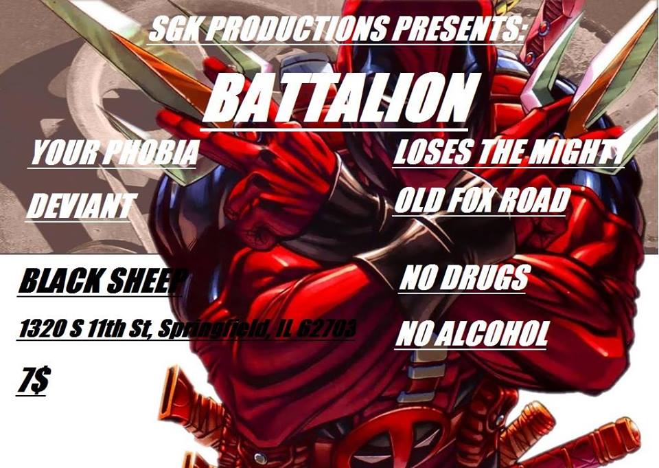 It’s a Saturday and we have a stacked show happening at Black Sheep tonight! Tonight there are going to be six bands playing. Headlining things is the mighty Central Illinois metal band Battalion! If you like heavy music then Battalion is the band for you. Check out some of their music streaming below. This show will also be the return of another metal band from Litchfield, Illinois called Your Phobia. We will also have the return of Central Illinois post-hardcore band Loses The Mighty, who have played at Black Sheep a number of times in the recent past. Then we will have Central Illinois hardcore band Deviant. A last minute addition to this show is the two-piece band from Canada, Shahman. They played at Black Sheep back in May. Opening things up we have Old Fox Road, who actually just performed at Dumb Records last night!