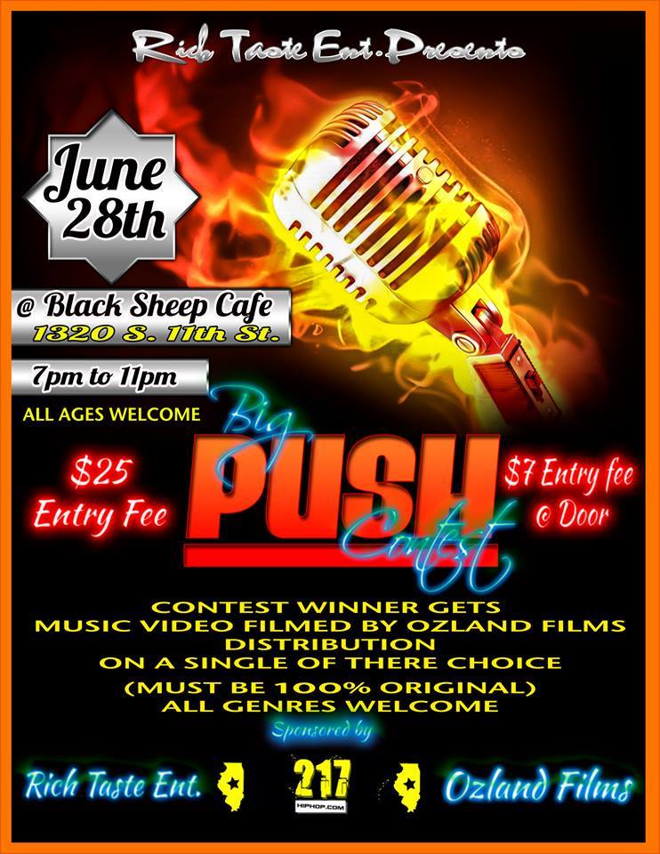 Rich Taste Entertainment and Ozland Photography have teamed up to bring you “The Big Push” showcase/contest. The contest is designed to give one lucky artist/band a shot at the big time. The winner/s of the contest will receive professional recording, a music video and digital distribution.