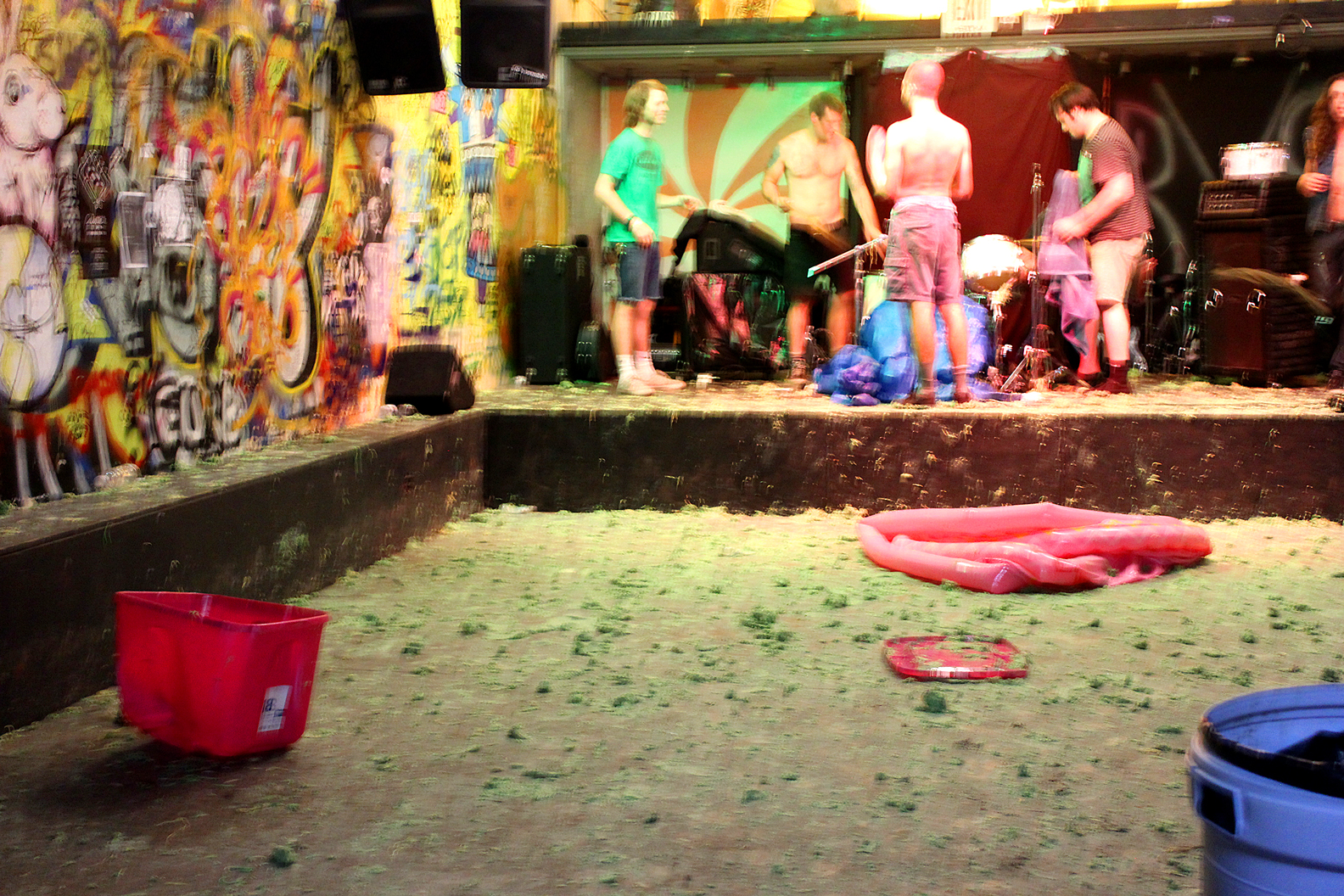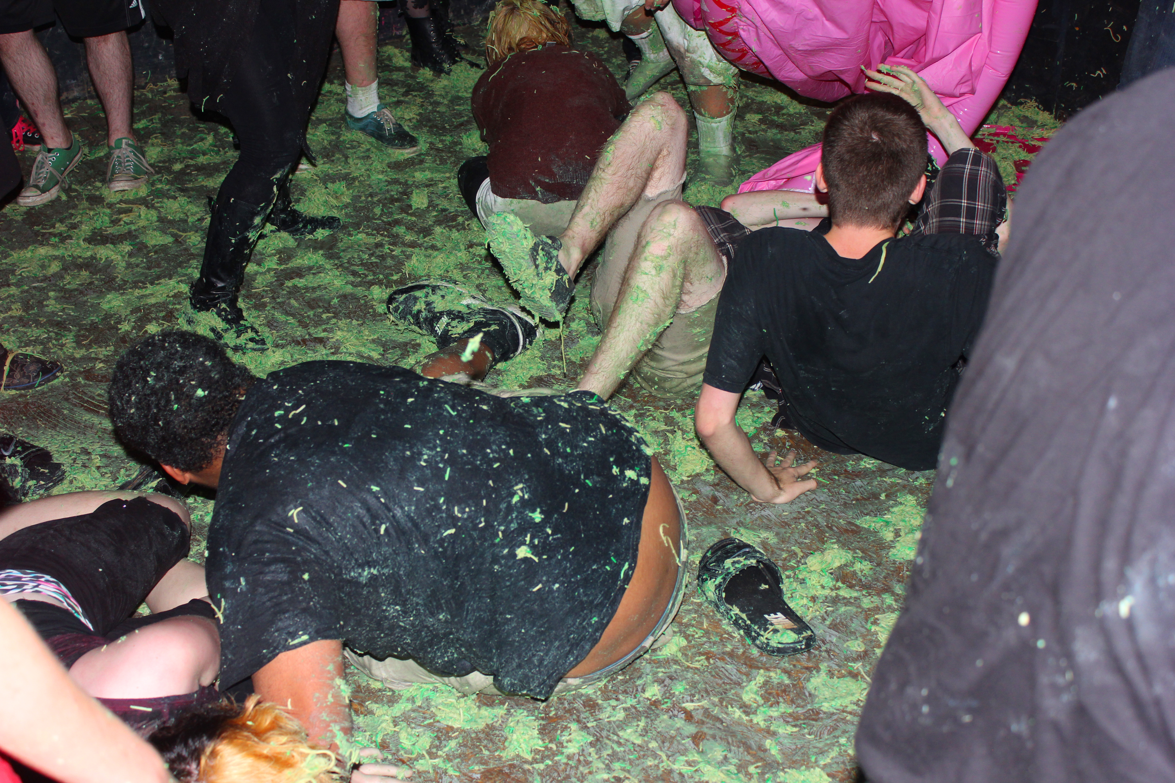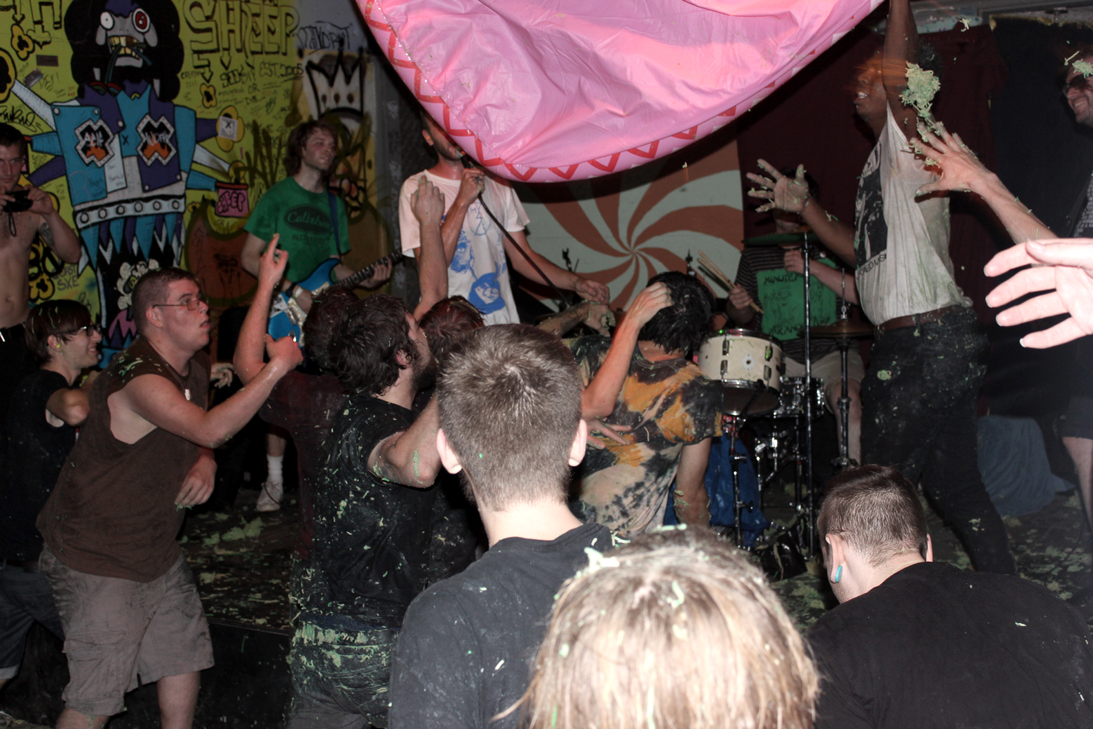 On Friday, September 5th Black Sheep saw a mess like one there has never been before. Some sticky culprits somehow managed to sneak pockets full of green spaghetti into the show, and the spaghetti made an appearance while Lumpy & The Dumpers were trying to perform on stage. We have not yet caught whoever did this, but our forensics team is hot on a trail of clues right now and will be sure to catch the spaghetti havoc-causers. Today we do have a good batch of photos and a video from the spaghetti-pit that broke out during the Lumpy & The Dumpers set. You can check those out above and below, or find some more on our flickr photo stream.