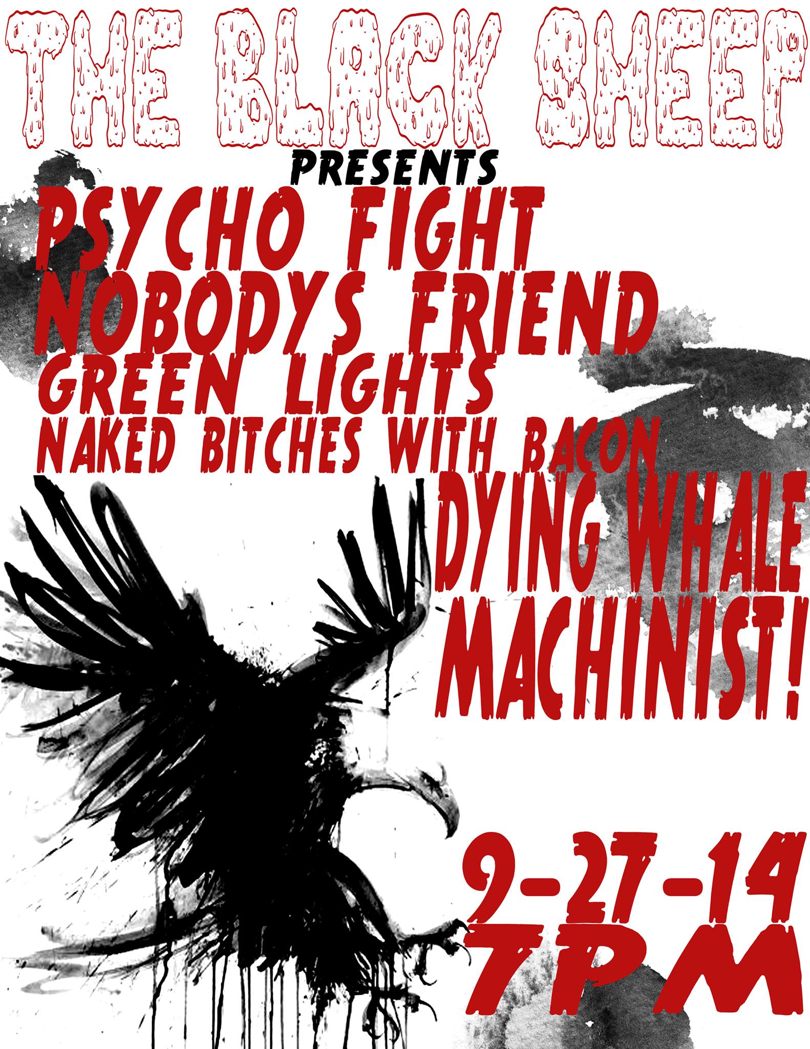 We have a couple of last minute changes to a show happening at Black Sheep coming up this Saturday, September 27th. The show is taking place right at 7:00 pm at Black Sheep, while Cassette Store Day will be going on next door over at Dumb Records. There are now two touring bands from Georgia playing the show at Black Sheep. They are Dying Whale and Machinist!. Both play a style of melodic hardcore. You can check out some of Dying Whale’s songs streaming below. In addition to those bands there is also the original lineup of Psycho Fight, Naked Butchers and Bacon, Nobody’s Friend, and Green Lights.
