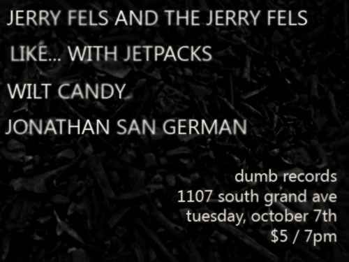 Are you ready to hear about the next show lined up at Dumb Records post-Cassette Store Day? This one is happening on Tuesday, October 7th. It will be a pretty chill, mostly acoustic show. We have two-piece Springfield acoustic folk band Wilt Candy playing. We also have a touring act from Massachusetts and that is Jerry Fels And The Jerry Fels. You can check out some of Jerrys’ music streaming below. Then we have another rare performance by Springfield video game instrumental band, Like… With Jetpacks. Opening things up will be a solo set by Jonathan San German.