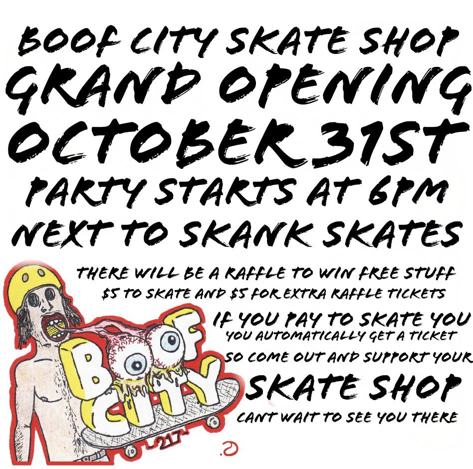 So Friday, October 31st will be the new Boof City Skate Shop grand opening. You can find the flier for the event above. Find a facebook event for this right here. Keep your eyes and ears peeled for anything going on at Black Sheep that same night. We will post regular hours for the new Boof City Skate Shop when they are known.