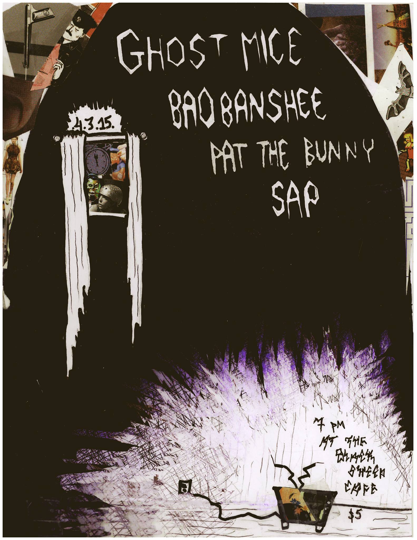 On Friday, April 3rd we have a nice show coming up for all of you folk punk fans, ska fans, or fans of anything. Ghost Mice from Bloomington, Indiana will be returning to Black Sheep for this show. Stream some of Ghost Mice’s music below. You might remember Ghost Mice came through about one year ago with Bernay’s Propaganda from Macedonia. This time the band is coming through with Pat The Bunny– solo musician also known for playing in the band Ramshackle Glory, which played at Black Sheep back in the summer of 2012. Also playing this show is your favorite ska-punk-formal band Bad Banshee. And opening things up is the three piece grunge/punk band SAP.