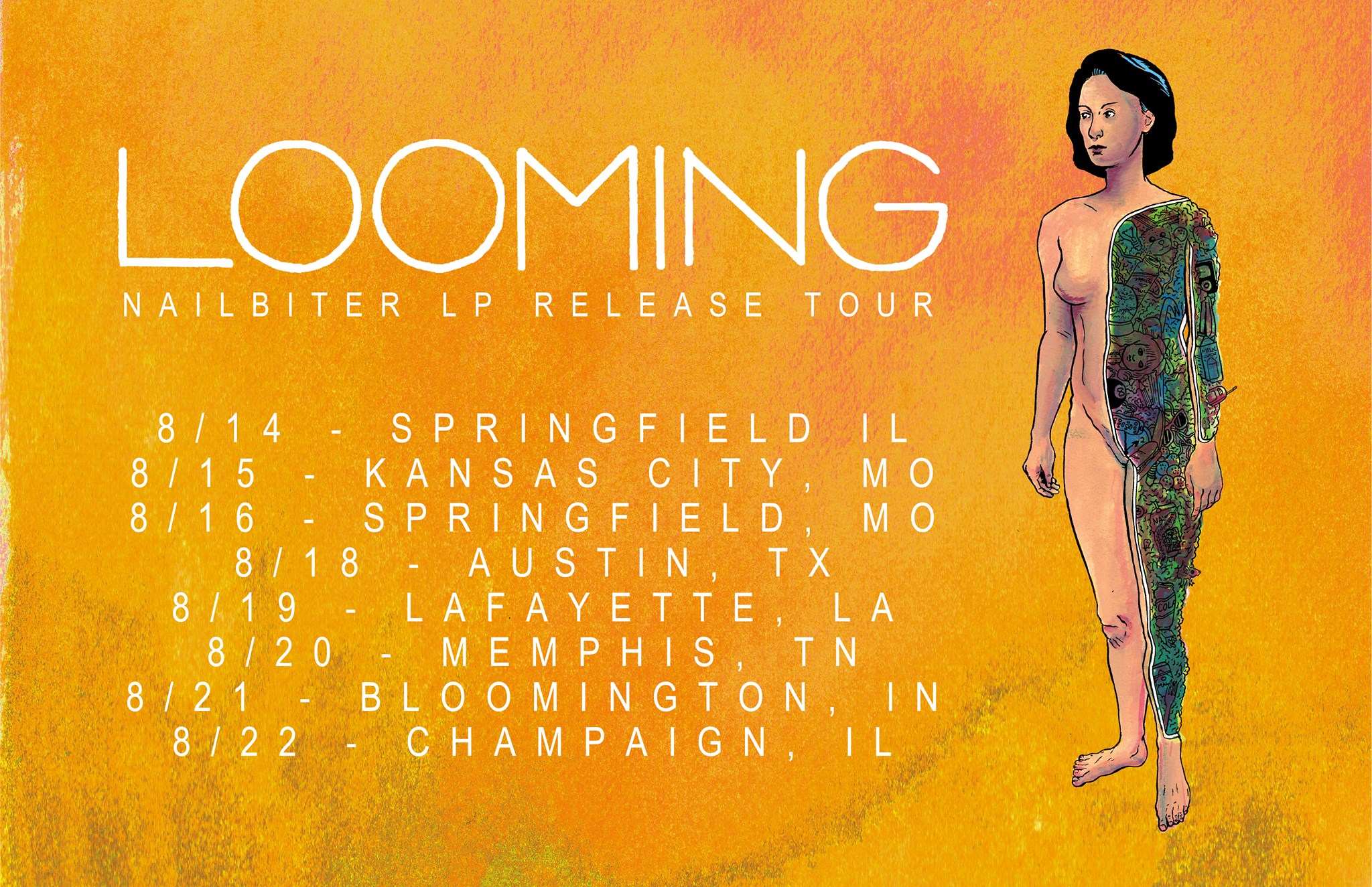 Springfield band Looming have announced the dates for their tour coming up later this month, surrounding the release of their brand new album Nailbiter, coming out on August 14th on No Sleep Records. You can check out the dates listed on the image above, or also below. The band will be hitting the road for seven days after they play their LP release show here at Black Sheep on Friday, August 14th.