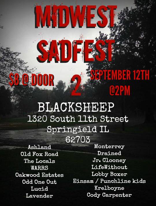 Things are cooling down outside, but they sure aren’t slowing down here at Black Sheep! Today we have a fifteen-band festival happening here at Black Sheep called Midwest Sadfest. It is the second year the festival is happening, but the first time for it to happen here in Southtown. Let’s take a look at the full lineup for today:
