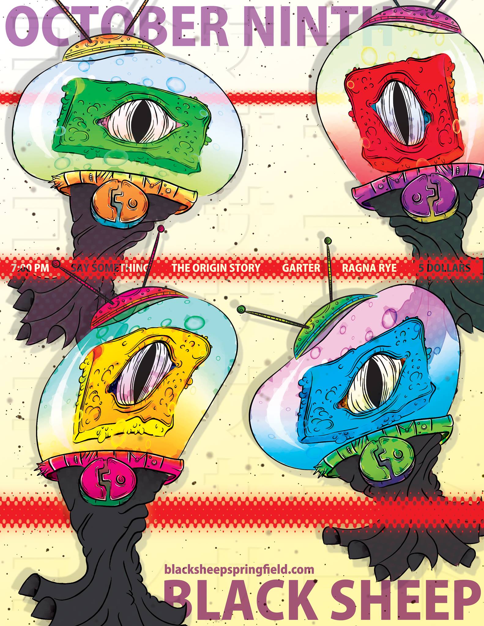 It’s a Friday night and there is a show happening at Black Sheep! This one is a punk show for fans of ska and dancing. Tonight we are going to keep The Black Sheep running on circle pits with the hectic hardcore/punk band Say Something. The ska band on the bill tonight is a new one from Lincoln, Illinois called The Origin Story- featuring members of bands that have played at Black Sheep before. Before that is the Nighthawk-flavored punk band Garter– whose new demo can be streamed below. Starting things off is the first Black Sheep performance for Springfield folk/rock band Ragna Rye.