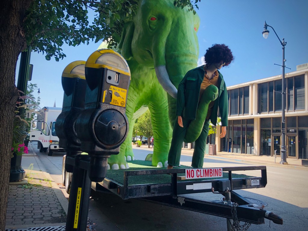 Here is just another post to let you all know once again that parking downtown is free, and our wonderful Mayor has once again extended that free parking until the end of this month. We have decided to utilize some of this good free parking ourselves and plopped our elephant in front of our store (you aren’t actually supposed to take up spots for more than two hours though).