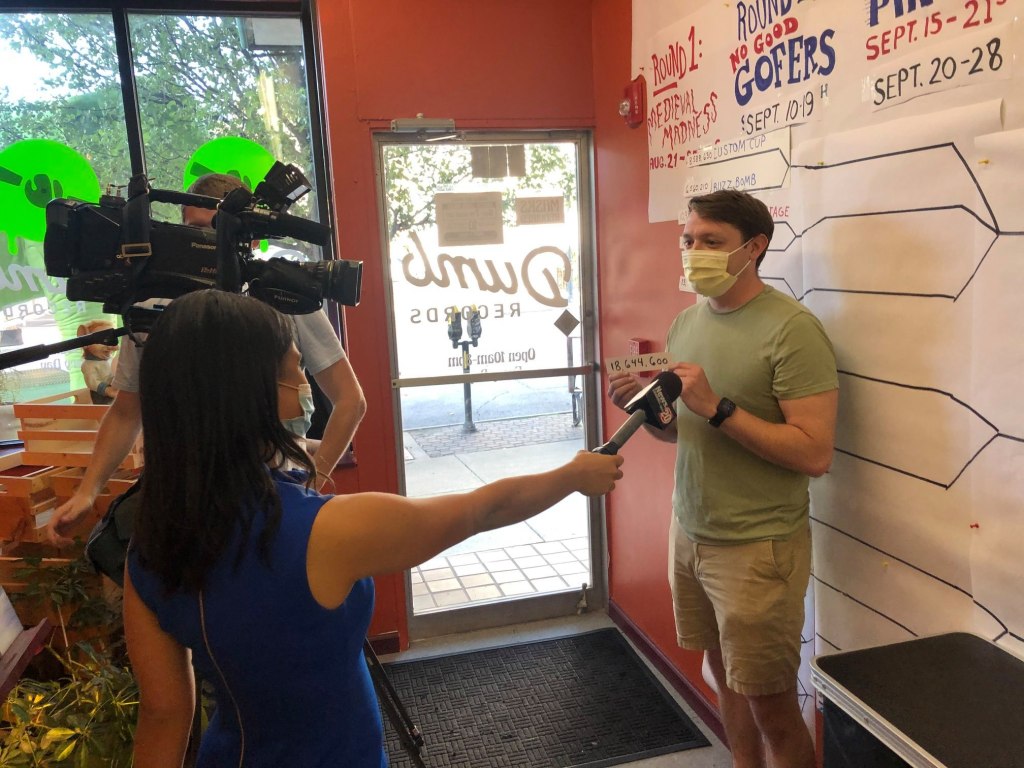 You are probably all sick of hearing about this pinball tournament from us by now. Well, it’s still going on, and will be until October 8th. Things are getting more intense, and now even News Channel 20 has caught on to our madness and has decided to cover the story. We appeared on the nightly news this past Sunday night. The article along with video clip online “Dumb Records Hosts Pinball Tournament” can be found online right here. From the article: