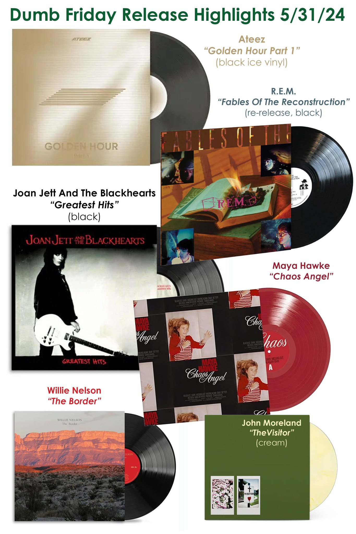 – JOAN JETT with a greatest hits album spanning her career (on black vinyl).