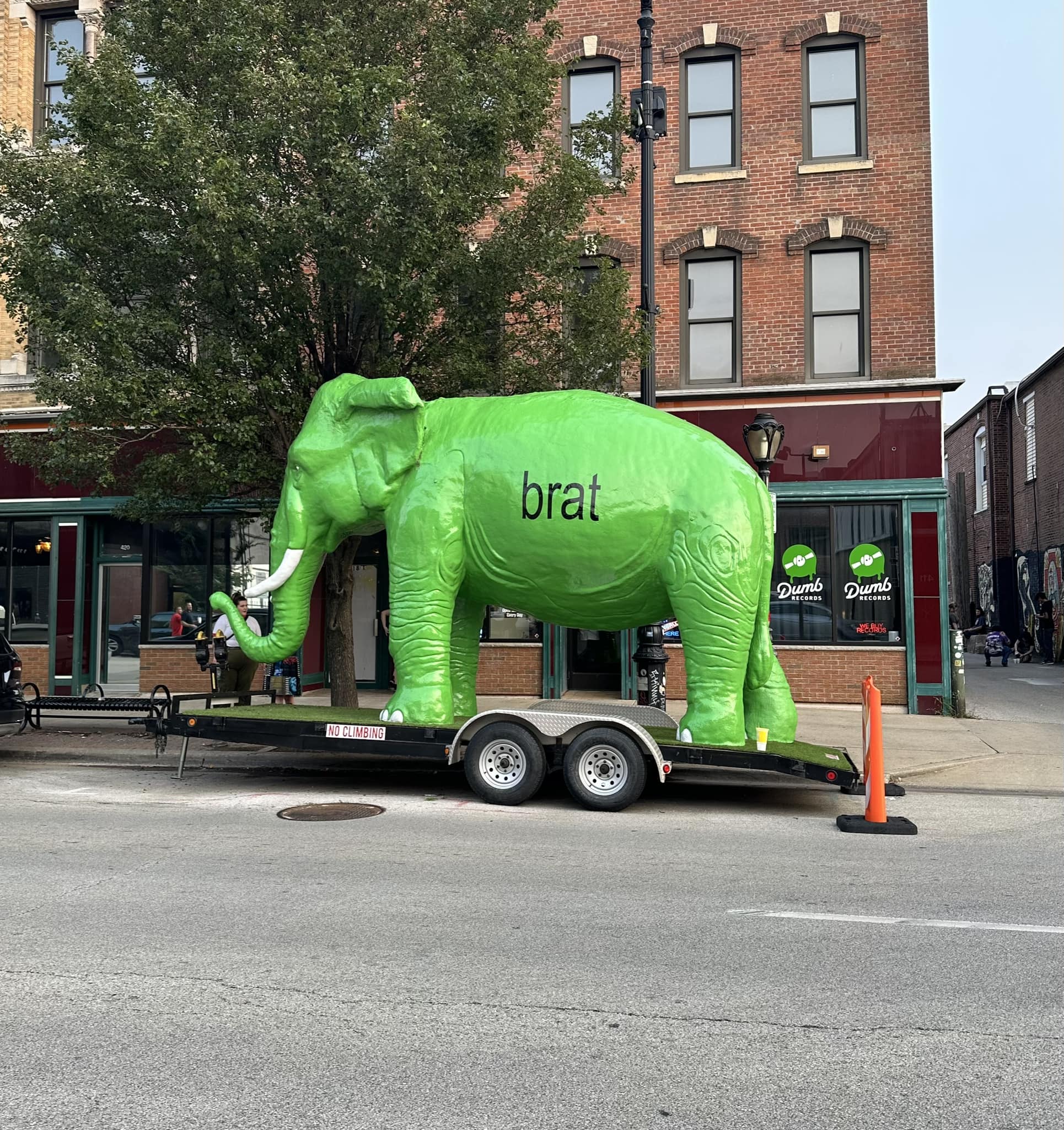 It seems our elephant has gone viral a bit lately. We finally got stocked up with the brat record and wanted to participate in the fun. I guess people really dig it or something.