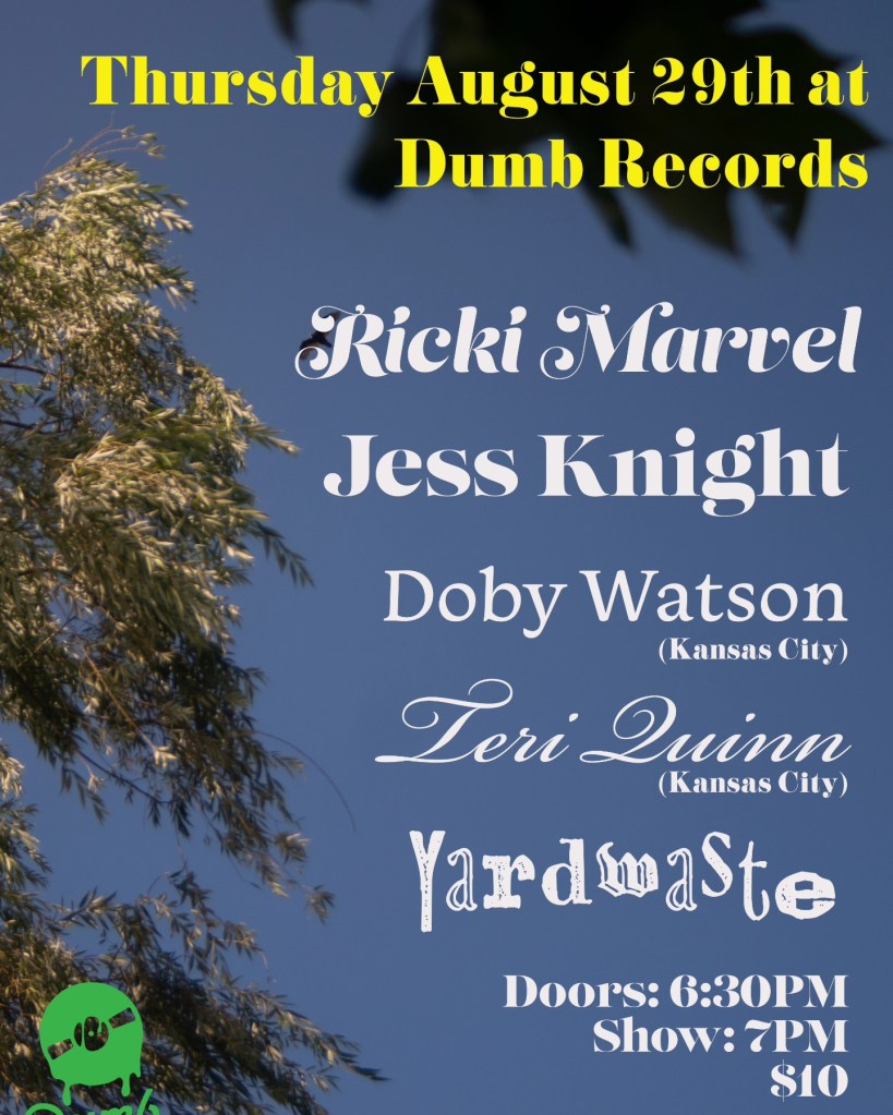 Thursday night we have another show which changes things up, a mostly solo artist show featuring indie folk americana artists Doby Watson and Teri Quinn along with local artists Ricki Marvel, Jess Knight of Looming, and folk punk band Yardwaste.