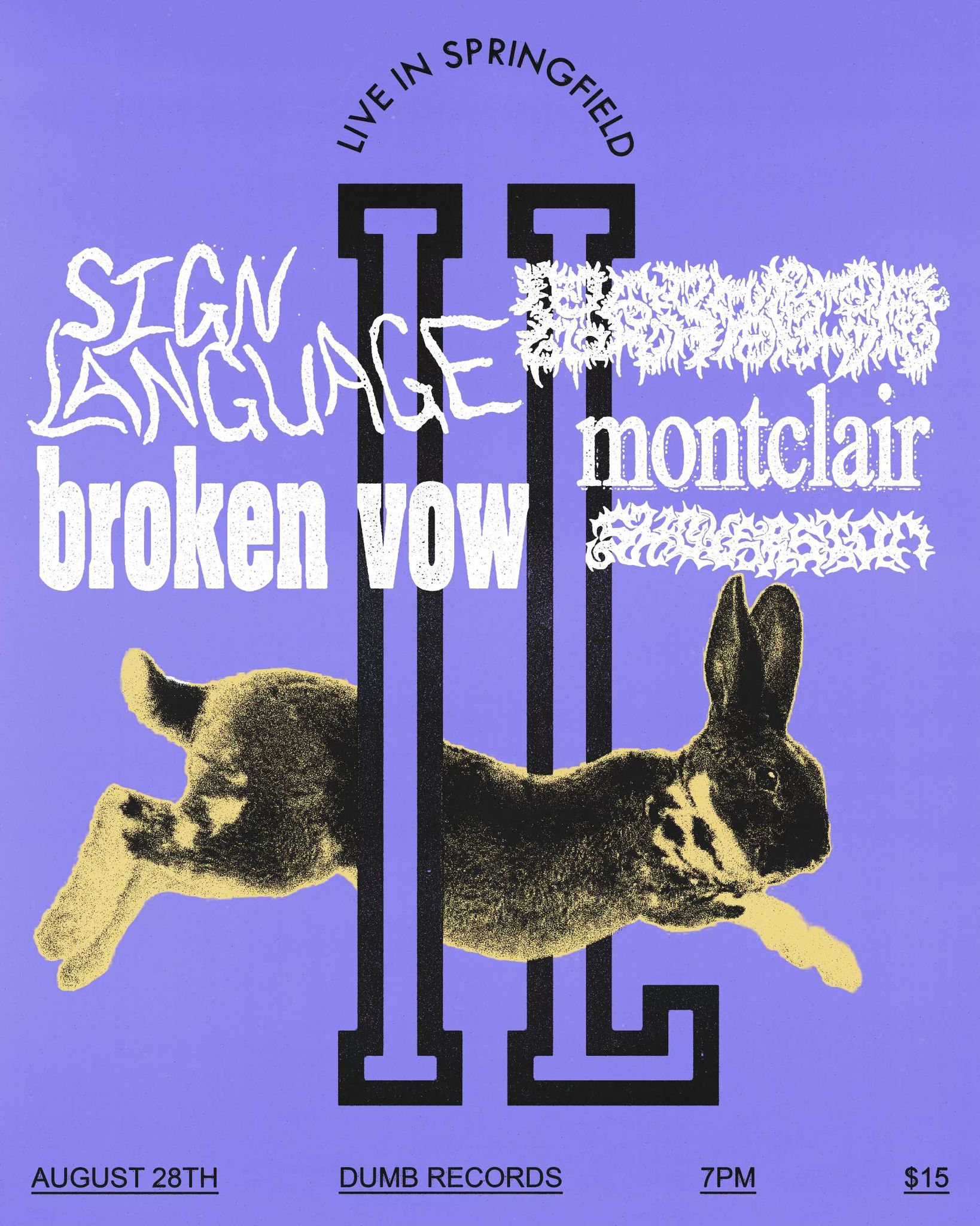 Tonight, we have a show that’s kinda mixed genre with a little black metal and emo sprinkled in but still basically another loud kung fu pit thing featuring Sign Language from Cincinnati, Broken Vow from New England, Rejoice from Ohio, Montclaire from CT, and local support Subversion
