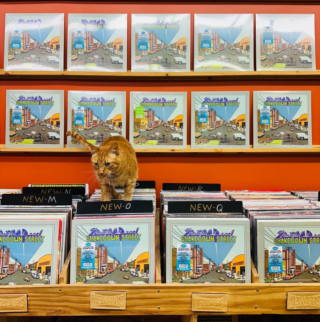 “I don’t like the Grateful Dead… I try and I try. I hear this is their disco album, but I listened and I think there’s only one disco song on it. It doesn’t have any of the hits “Touch Of Grey”, “Cocaine” or “Ridin’ That Train” on it. This might have been a mistake of a pick and I am sorry. Grateful Dead fan’s out there, do you think this one is any good? Let me know in the comments. It is the sea blue vinyl variant at least.”