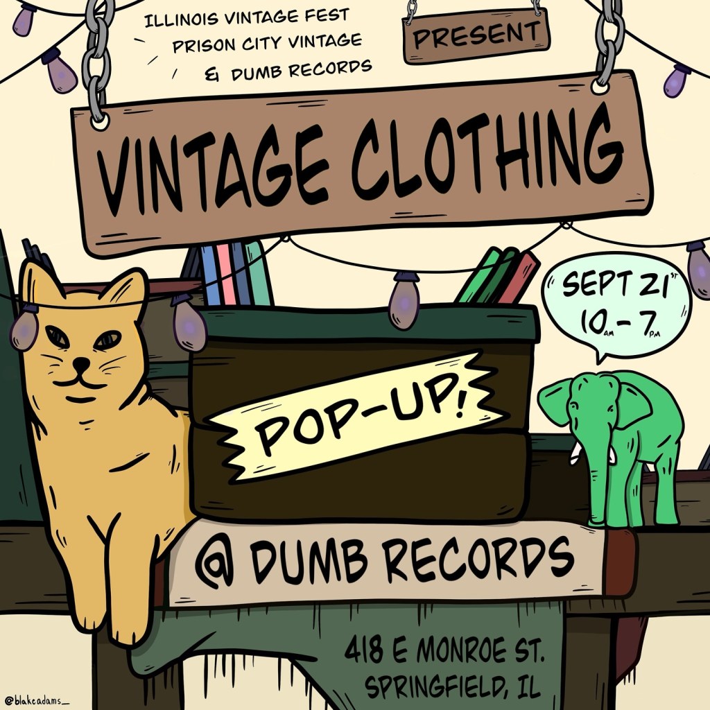 No shows this week but we recently announced we’re hosting another vintage fest with Prison City Vintage on September 21. Seems people really get into that. Come get your 90s tweety bird sweater or something for your niece. Over 20 vendors will be setup in and around Dumb Records that day.
