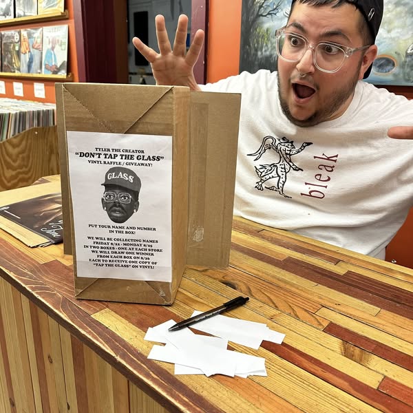 One fun thing we’ve done lately is somehow we got our hands on Tyler’s latest Don’t Tap The Glass album and did a giveaway at both of our stores and were able to give away 2 copies to 2 lucky winners. What a fun time.