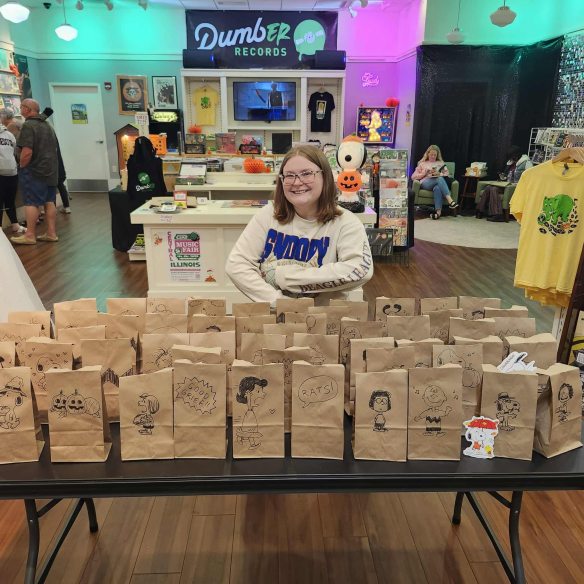 Last weekend we had a great time at our Peanuts 75 year anniversary Listening Party. We got to hear a curated playlist of Peanuts/Vince Guaraldi tunes officially provided to us by Lee Mendelson Productions. August decorated 50 treat bags with exclusive stickers and goodies for everyone to pick up and it was just a nice time all around.