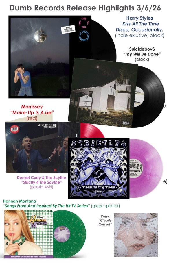 – Oh, GREAT it’s a new one from MORRISSEY of THE SMITHS. “Make-Up Is A Lie”. Love em or hate him, this one is on red vinyl.