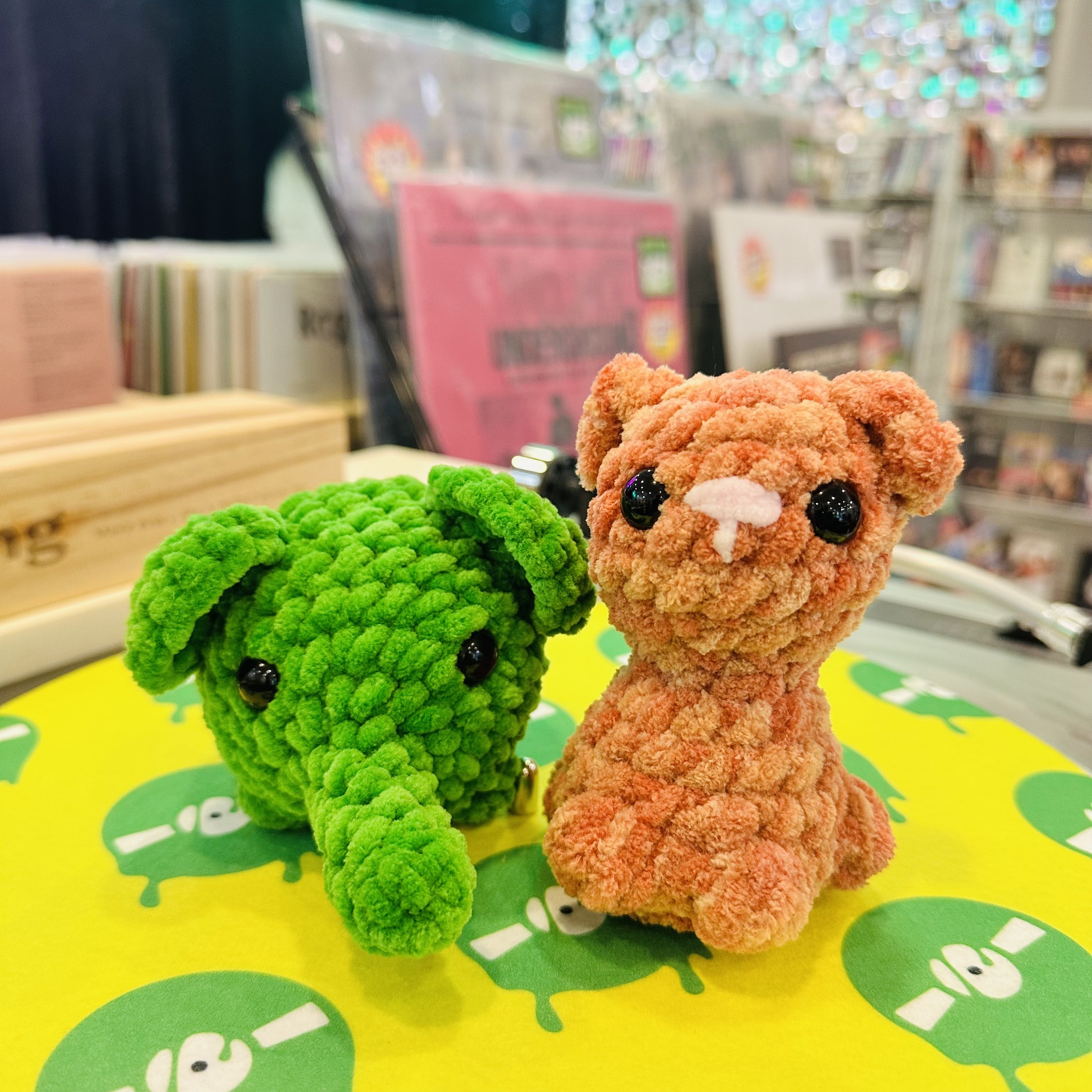 Something brand new we’re offering this time is our first actual Dumb Recs Plushies! You can get your own stuffed Pepperoni and Green Elephant!