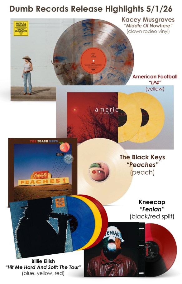 – BILLIE EILISH is here with a TRIPLE live album, “Hit Me Hard And Soft: The Tour” out on blue, red, and yellow vinyl.
