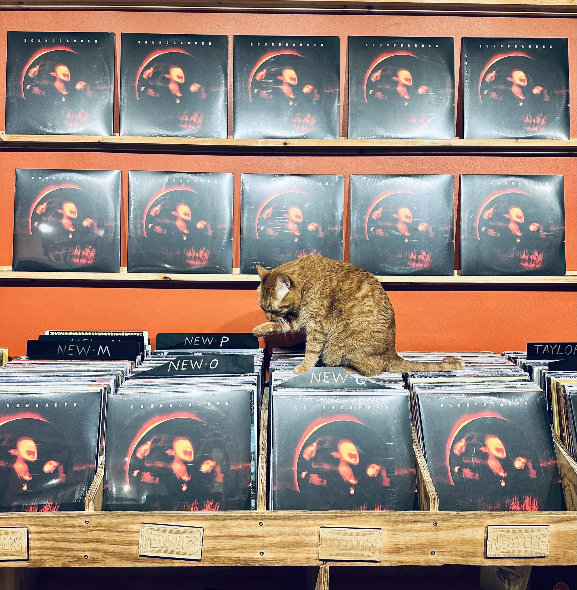 “This evening I’d like to pick one from recent Rock N’ Roll Hall of Fame inductees, Soundgarden. This is their fourth album from 1994, “Superunknown.” My 90’s grunge rockers out there this one is for you. It’s got “Spoonman” on it. It’s got “Black Hole Sun” on it. It’s got “Fell On Black Days” and a few other hits. Hey question for you all, do you consider this classic rock at this point? Or do you consider this “dad rock” now even? Either way, we have now on the shelves it at Dumb and Dumber Records!”