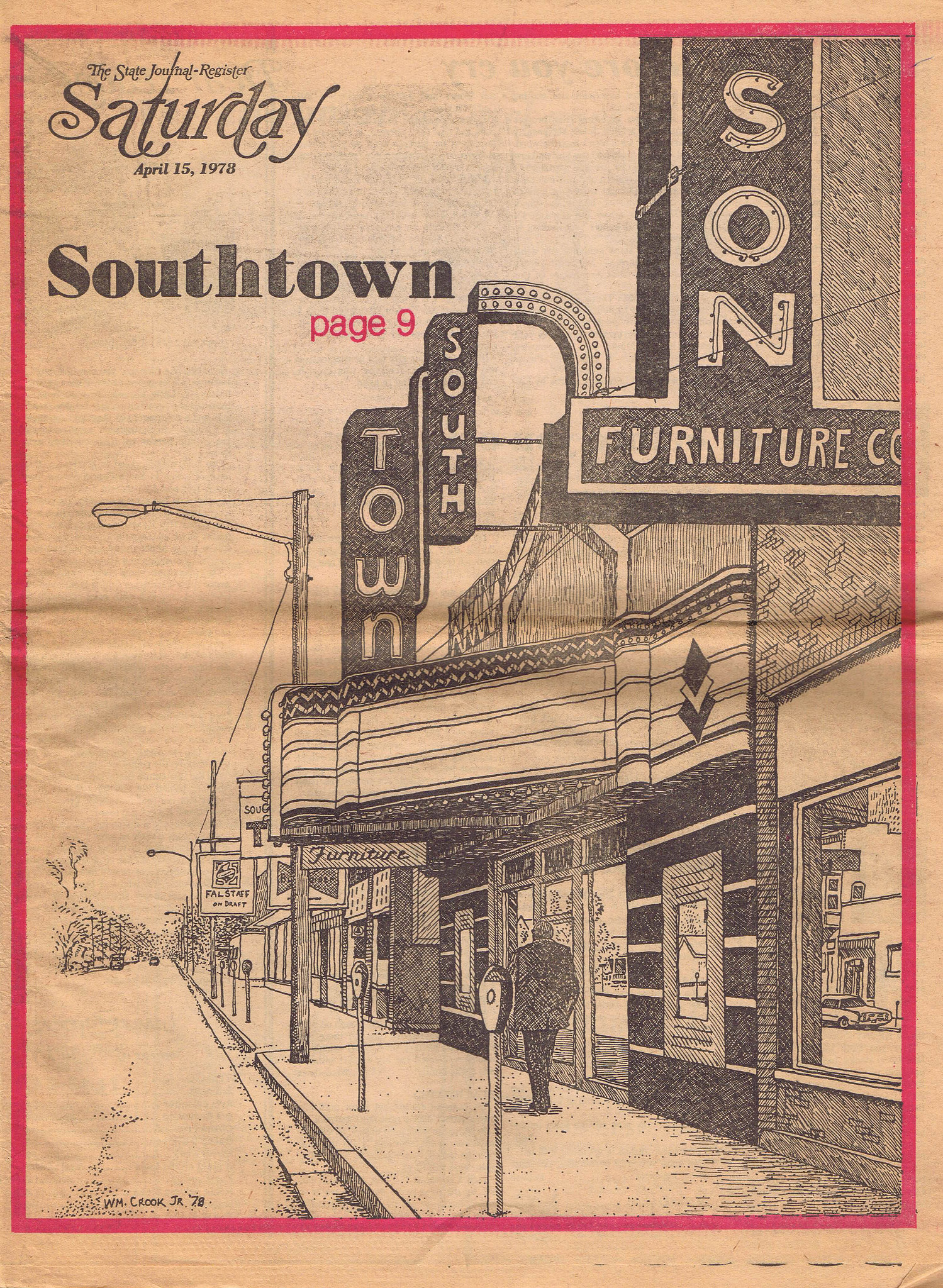 April 15, 1978 – The State Journal Register publishes a lengthy article about Southtown in their Saturday paper. The article talks about how the neighborhood was booming in the early 1900’s, but seems to describe it’s current state in the 1970’s as more as run-down and forgotten. In 2015 George receives permission from William Crook, the original artist of the SJ-R drawing, to use for neighborhood revitalization effort “Project Southtown.”