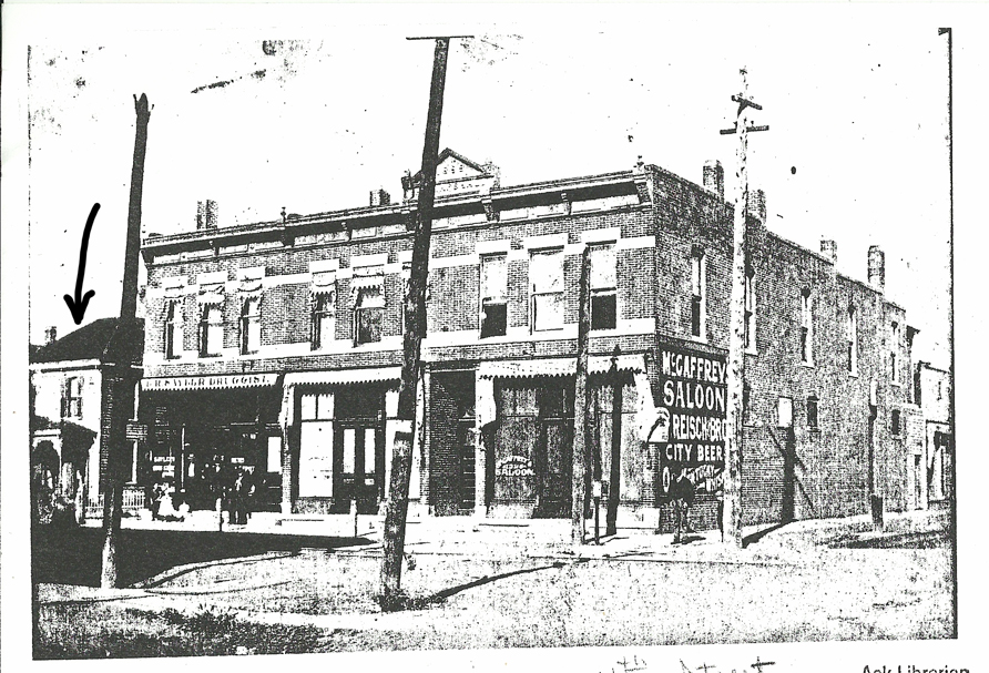 1899 – The Building that now houses Skank Skates is built (photo taken in 1902, shown as “McGaffrey’s Saloon). You can see a house in place of where Black Sheep is now. Black Sheep was built at some point between this date and the 1940’s. The building that became Dumb Records contains nails that were not manufactured past 1890, so that building may have been built earlier.