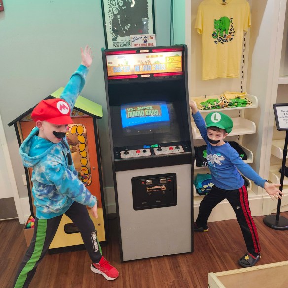 We recently moved around some arcade games. We now have Super Mario Bros free to play at our mall store. Galaga was sitting here and has now moved back to the arcade downtown.