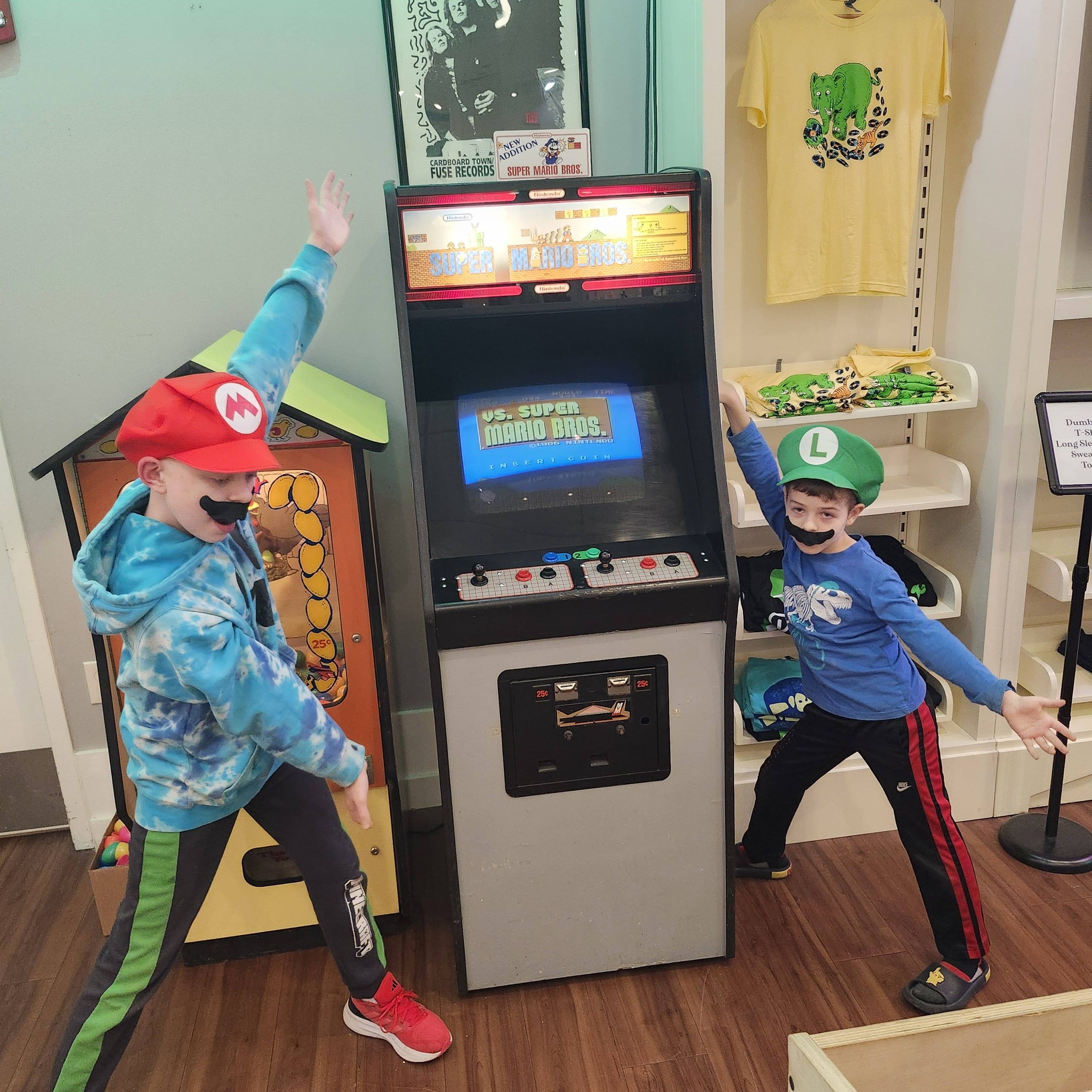We recently moved around some arcade games. We now have Super Mario Bros free to play at our mall store. Galaga was sitting here and has now moved back to the arcade downtown.