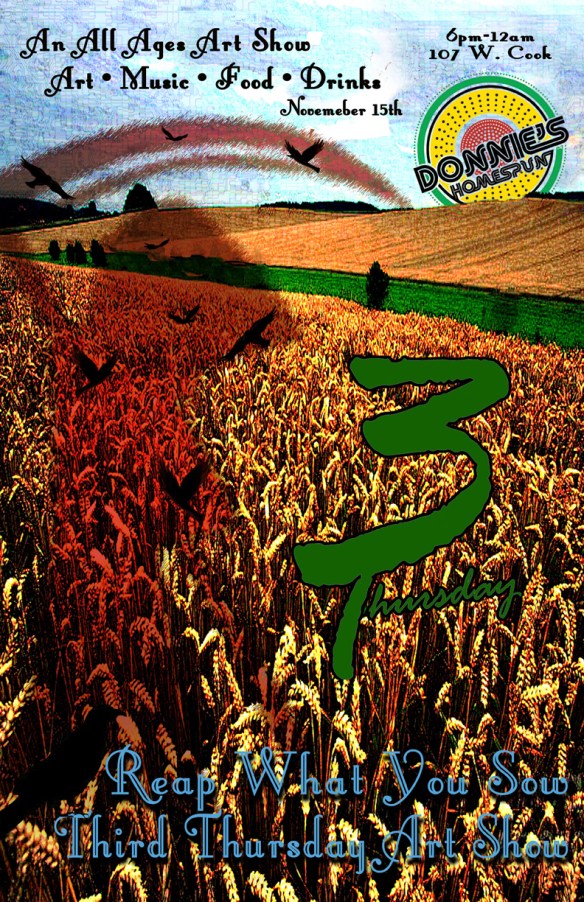 Tonight Donnie’s Homespun Pizza will be hosting the monthly Third Thursday Art Show. The event begins at 6:00 pm and goes until 12:45 am. Although the focus for Third Thursday is art, there will be a few musical acts performing including Yoshi, Alyssa Del Fargo, and Cocked & Locked. The event is also all ages. You can find a facebook event here.