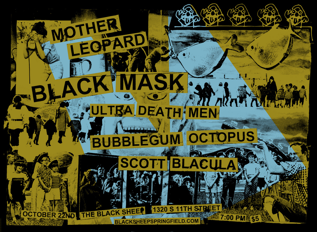 Who’s ready to get loud? Black Sheep is ready to get loud! Loud and fuzzy! Tonight’s show features Springfield’s Mother Leopard, Pennsylvania’s Black Mask, Jersey’s Ultra Death Men, Outer Space’s/King Vol-lorb’s Bubblegum Octopus, Springfield’s Scott Blacula, and the last minute add Big Box. This show is literally going to turn it up to 11.  You can find a facebook event for the show here.