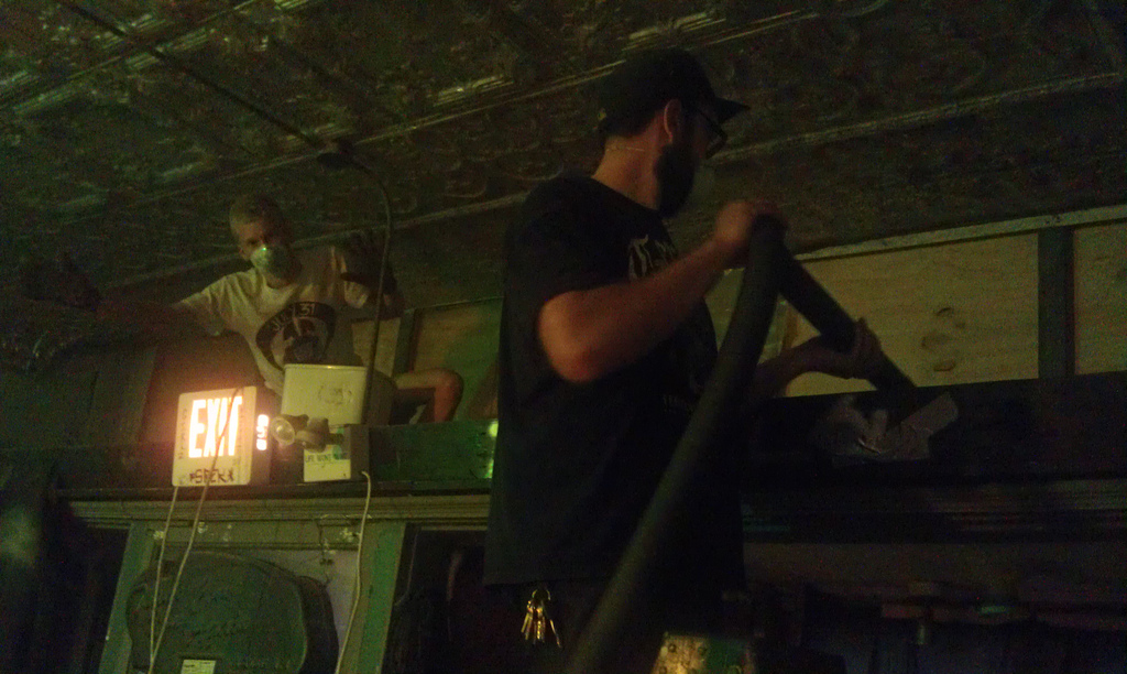 - The drop ceiling in the back of the main room was removed, opening up a lot of ceiling space.